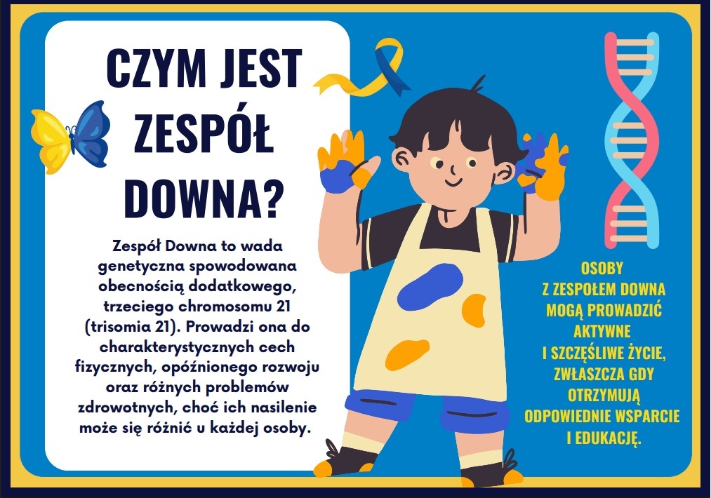 Zespół Downa to wada genetyczna spowodowana obecnością dodatkowego, trzeciego chromosomu 21 (tzw. trisomia 21). Może ona wpływać na rozwój fizyczny i poznawczy, jednak każda osoba z zespołem Downa jest wyjątkowa i posiada swoje indywidualne możliwości oraz talenty. Przy odpowiednim wsparciu, edukacji i akceptacji osoby te mogą prowadzić aktywne i satysfakcjonujące życie.